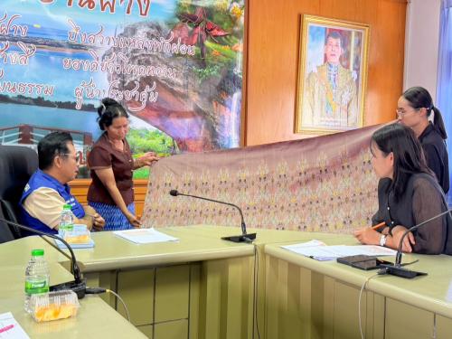 โดยได้รับเกียรติจาก นางอารีรัตน์ พระภูวงศ์ นักวิชาการเกษตรชำนาญการ เจ้าหน้าที่ศูนย์หม่อนไหมเฉลิมพระเกียรติขอนแก่น ผู้ร่วมออกแบบและพัฒนาลายผ้าอัตลักษณ์อำเภอบ้านฝาง นำเสนอข้อมูลเทคนิคการทอผ้าทั้ง 3 แบบ